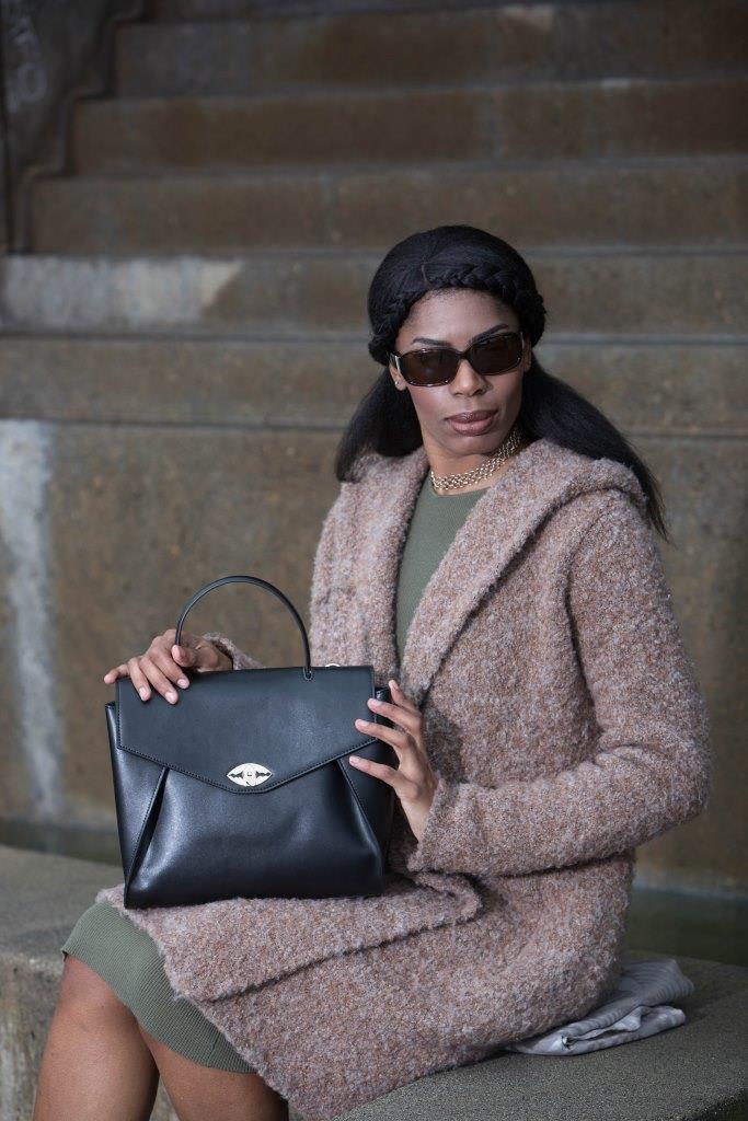 Ophelia Handbag in Black Pebble Leather